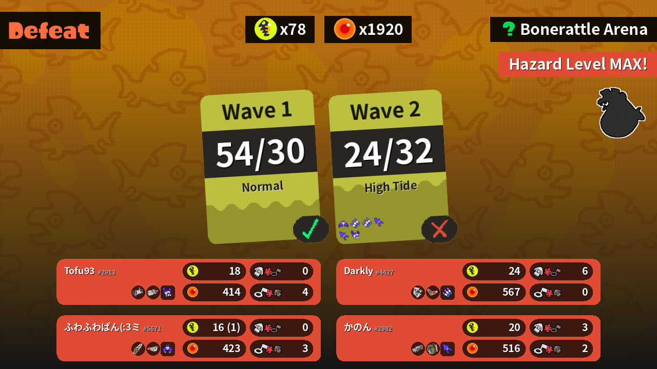 | Special | Triple Splashdown (1) | Triple Inkstrike (2) | Kraken Royale (2) | Crab Tank (1) |