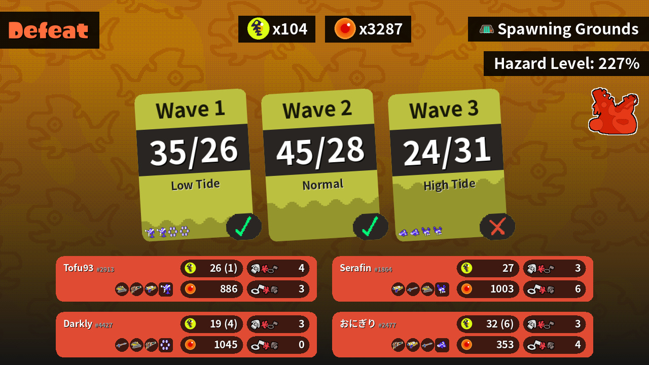 | Boss Salmonid | 14 | 8 | 14 | 21 |