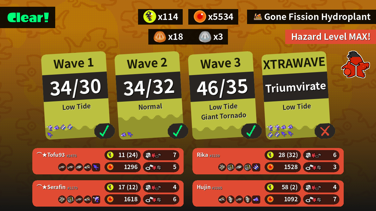 | Weapons | Grizzco Charger Grizzco Charger Grizzco Brella Grizzco Blaster | Grizzco Blaster Grizzco Stringer Grizzco Charger Grizzco Stringer | Grizzco Dualies Grizzco Slosher Grizzco Brella Grizzco Slosher | Grizzco Dualies Grizzco Slosher Grizzco Charger Grizzco Blaster |