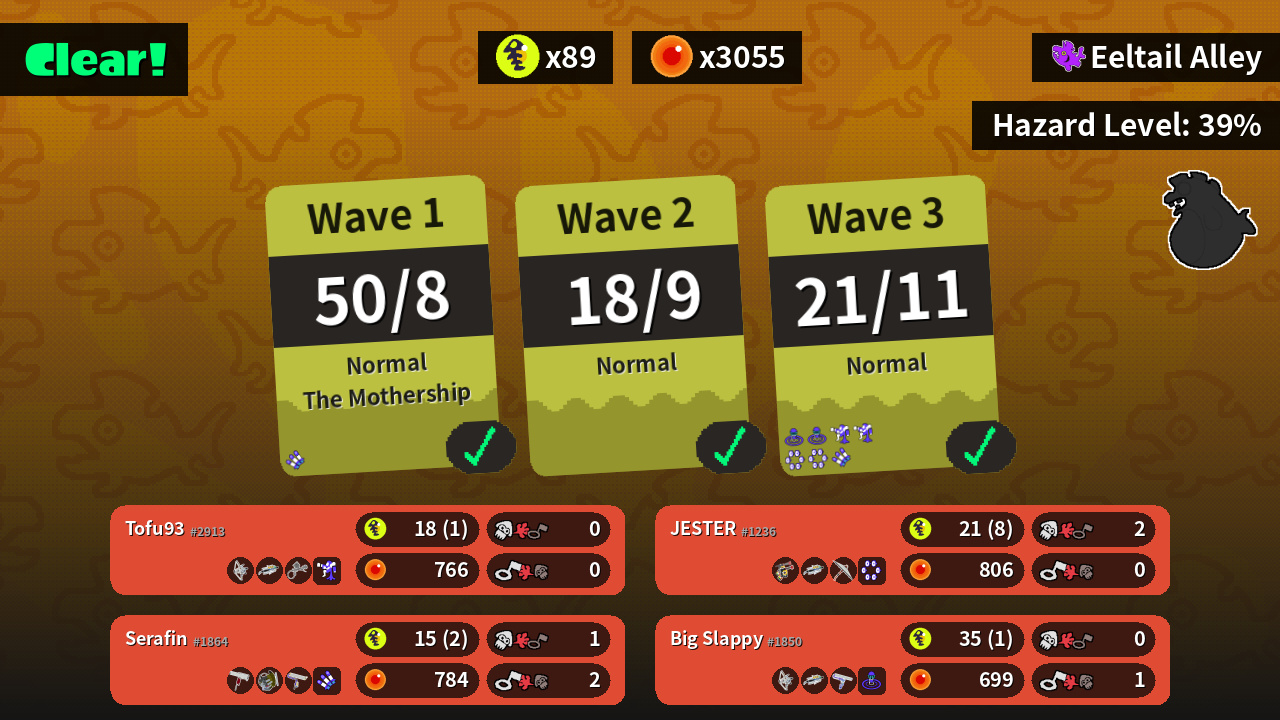 | Weapons | Tri-Stringer Grizzco Brella Aerospray MG | Tri-Stringer Grizzco Brella Big Swig Roller | Douser Dualies FF Grizzco Brella Recycled Brella 24 Mk I | Flingza Roller Grizzco Slosher Splat Roller |