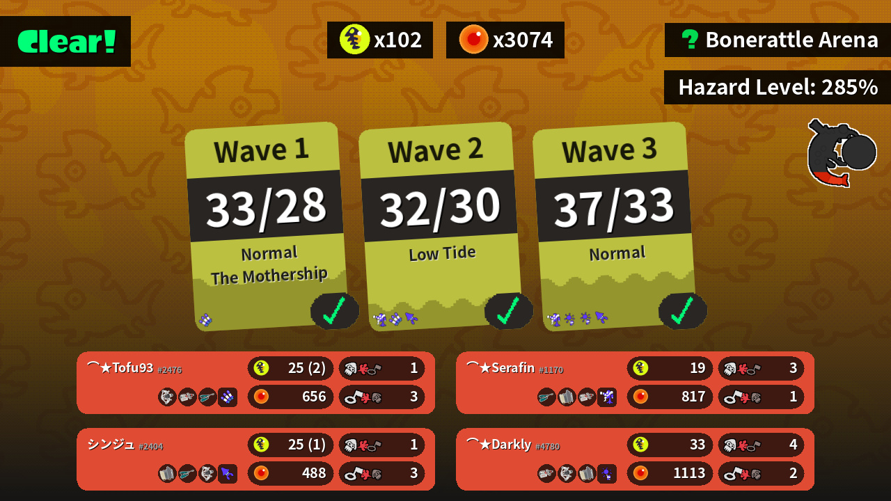 | Boss Salmonid | 16 | 14 | 7 | 12 |