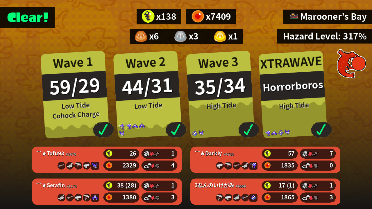 | Weapons | Snipewriter 5H Luna Blaster Flingza Roller Splattershot Jr. | Splattershot Jr. Flingza Roller Snipewriter 5H Luna Blaster | Luna Blaster Snipewriter 5H Splattershot Jr. Flingza Roller | Flingza Roller Splattershot Jr. Luna Blaster Snipewriter 5H |
