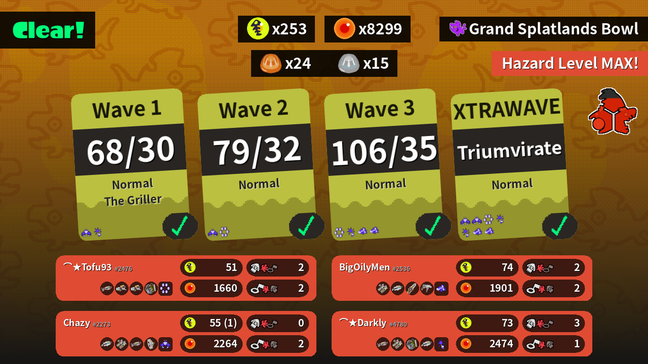 | Weapons | Grizzco Charger Grizzco Blaster Grizzco Blaster Grizzco Slosher | Grizzco Dualies Grizzco Brella Grizzco Splatana Grizzco Roller | Grizzco Charger Grizzco Dualies Grizzco Slosher Grizzco Brella | Grizzco Brella Grizzco Dualies Grizzco Charger Grizzco Stringer |