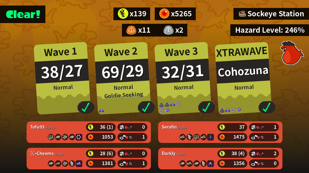 | Weapons | Grizzco Slosher Grizzco Brella Grizzco Dualies Grizzco Brella | Grizzco Brella Grizzco Blaster Grizzco Brella Grizzco Stringer | Grizzco Blaster Grizzco Stringer Grizzco Slosher Grizzco Blaster | Grizzco Brella Grizzco Charger Grizzco Dualies Grizzco Stringer |