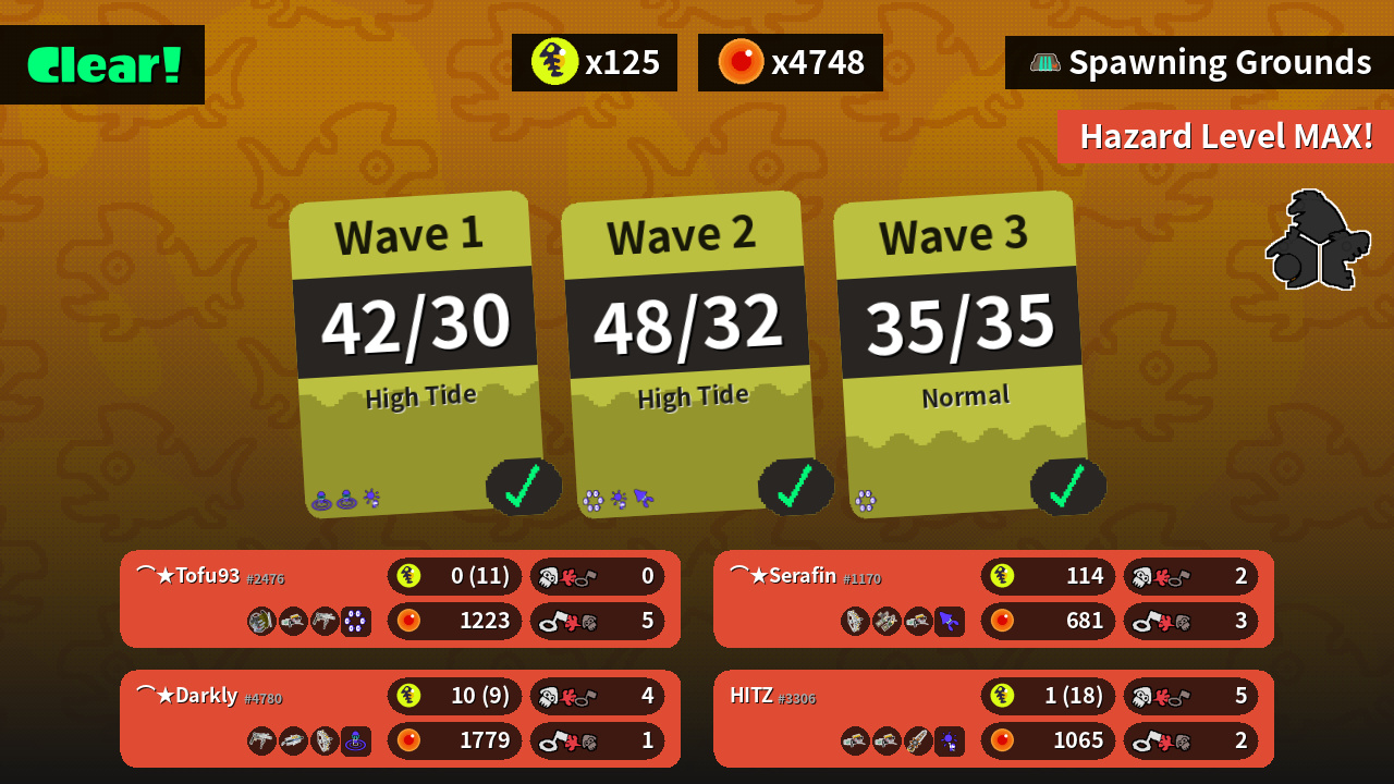 | Weapons | Grizzco Slosher Grizzco Blaster Grizzco Roller | Grizzco Stringer Grizzco Dualies Grizzco Blaster | Grizzco Roller Grizzco Brella Grizzco Stringer | Grizzco Blaster Grizzco Blaster Grizzco Splatana |