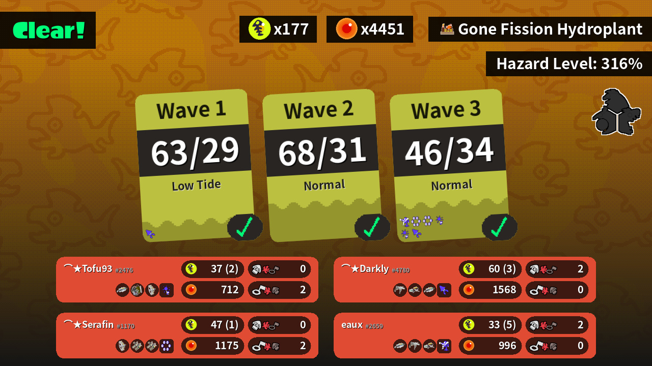 | Weapons | Grizzco Brella Grizzco Slosher Grizzco Stringer | Grizzco Roller Grizzco Blaster Grizzco Brella | Grizzco Stringer Grizzco Dualies Grizzco Dualies | Grizzco Brella Grizzco Roller Grizzco Blaster |
