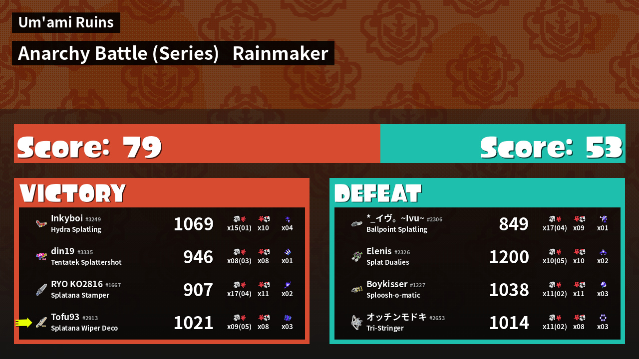 | Medals | #1 Splat Assister #1 Checkpoint Breaker #1 Tenta Missiles User | ||