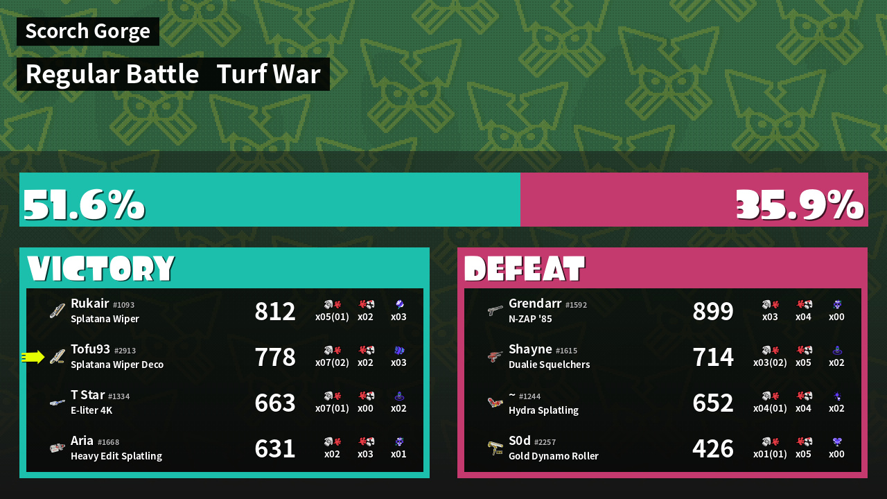 | Mode | Turf War - Regular Battle | ||