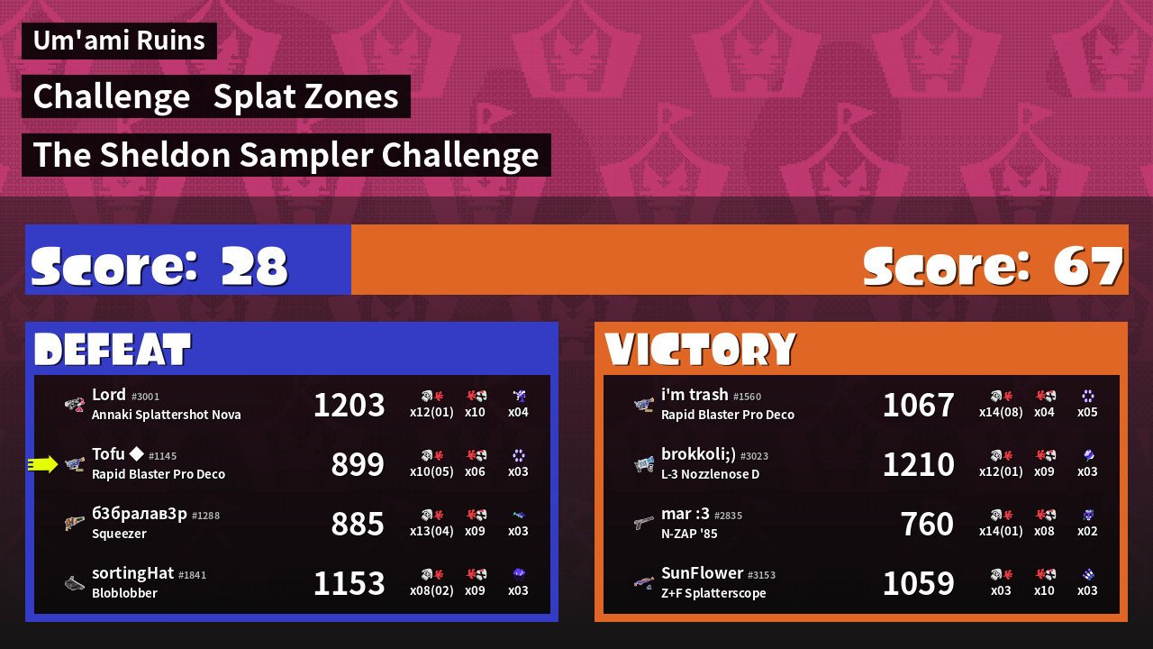 Challenge | The Sheldon Sampler Challenge Make the most of random weapons! | ||