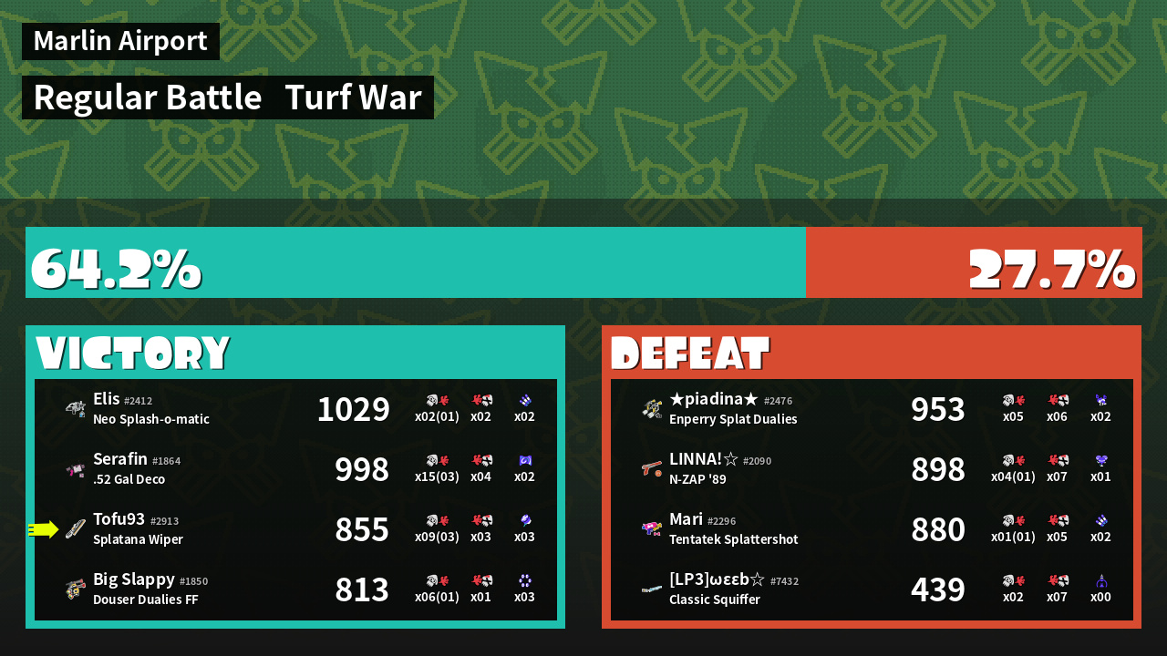 | Medals | #1 Splat Assister First Splat! #2 Overall Splatter | ||