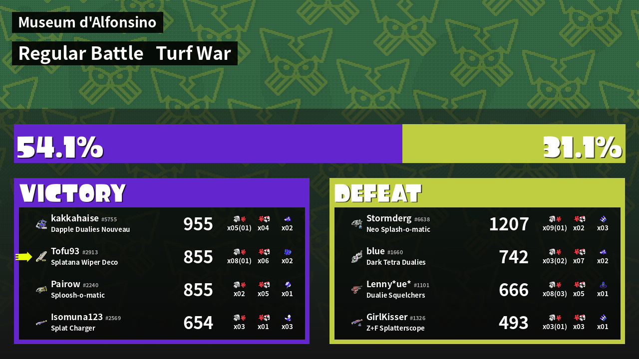 | Medals | #1 Overall Splatter #1 Popular Target #1 Enemy-Base Inker | ||
