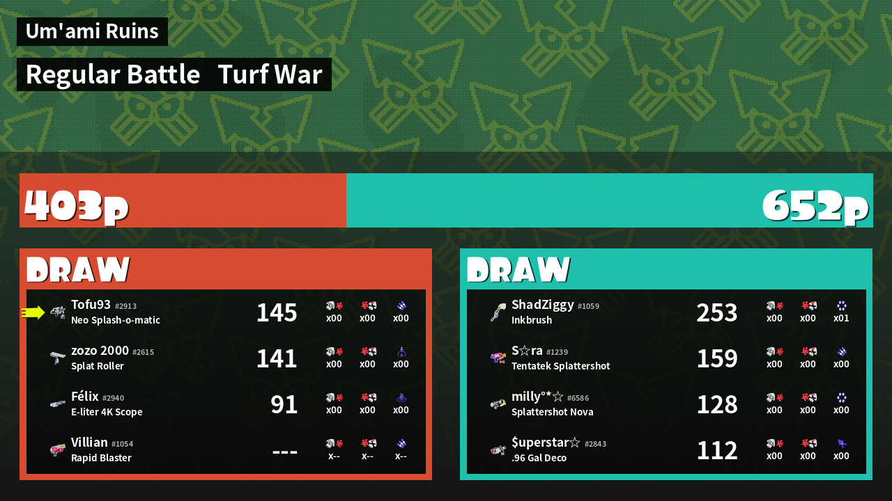 Kills / Deaths | 0 + 0 / 0 = Kill Ratio: 1.00 | ||