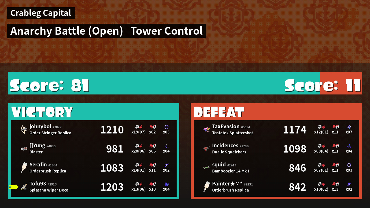 | Mode | Tower Control - Anarchy Battle (Open) | ||