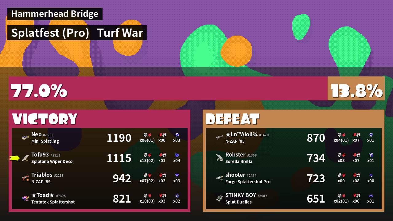 Kills / Deaths | 11 + 2 / 1 > Kill Ratio: 11.00 | ||