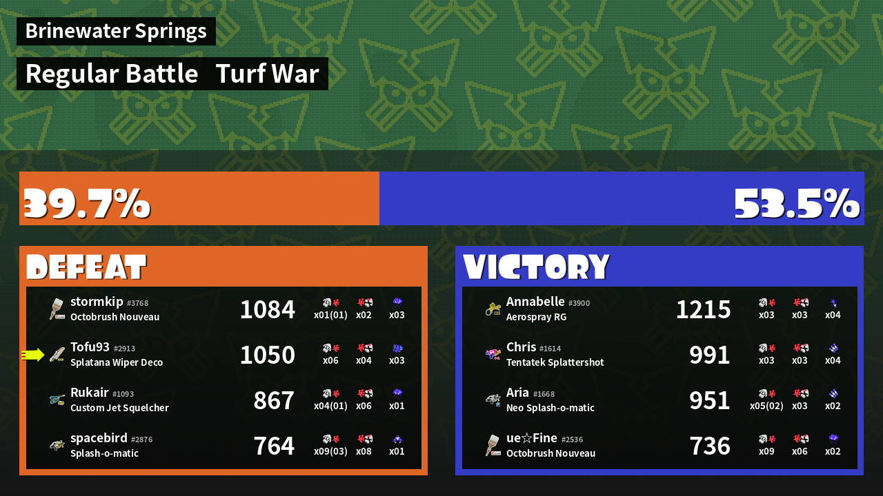 | Mode | Turf War - Regular Battle | ||