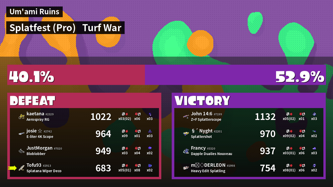 | Mode | Turf War - Splatfest (Pro) | ||