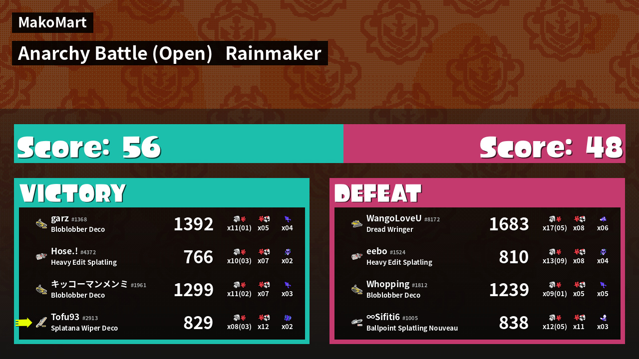 | Mode | Rainmaker - Anarchy Battle (Open) | ||
