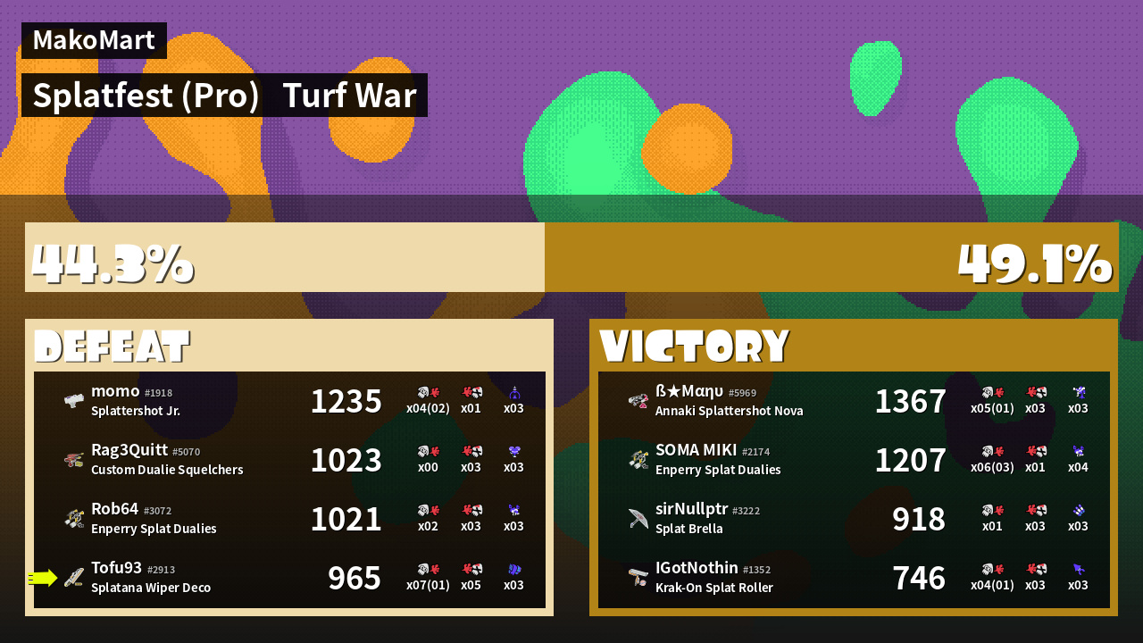 Kills / Deaths | 6 + 1 / 5 > Kill Ratio: 1.20 | ||
