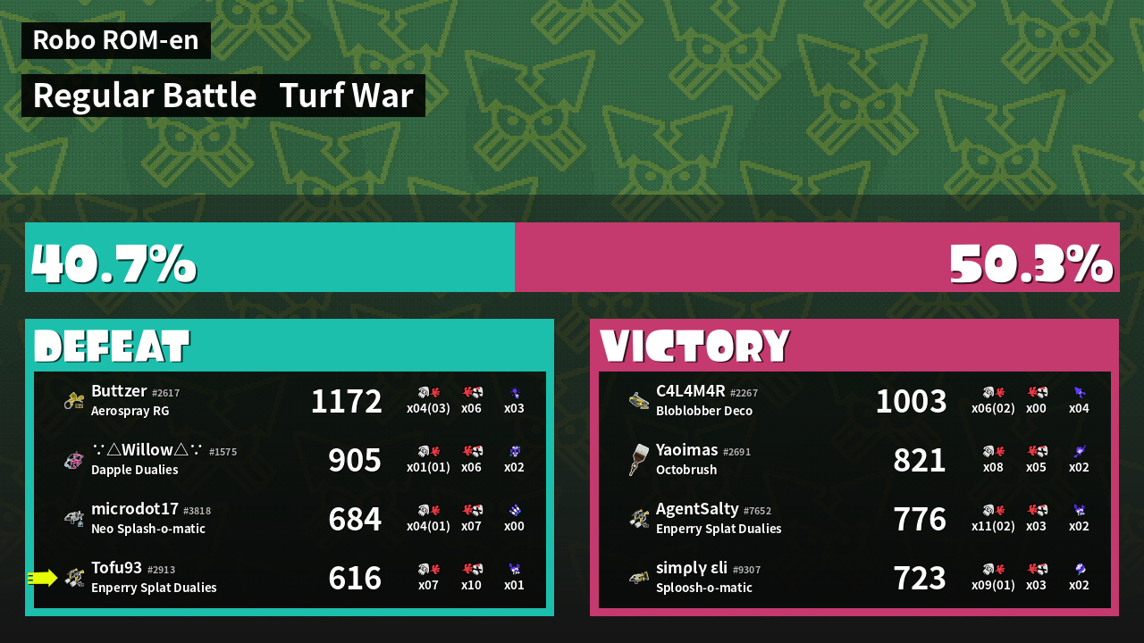 | Weapon | Enperry Splat Dualies ( Curling Bomb / Triple Splashdown) | ||