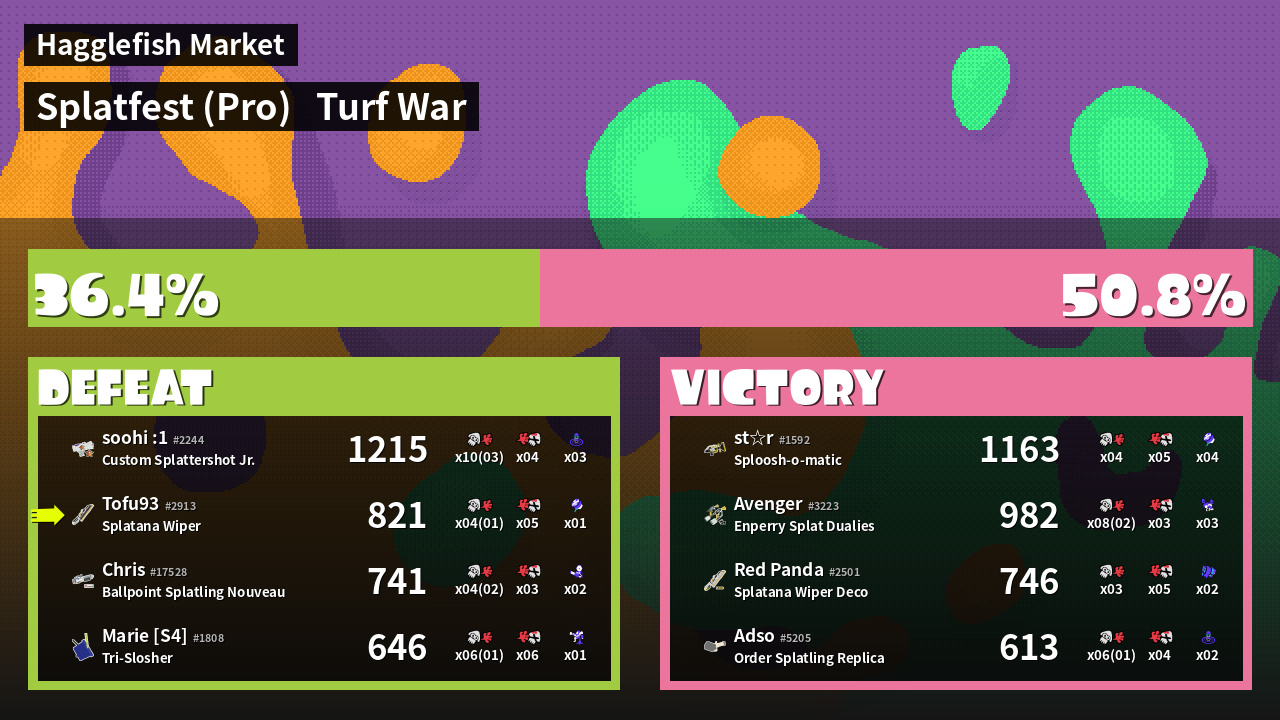 | Mode | Turf War - Splatfest (Pro) | ||