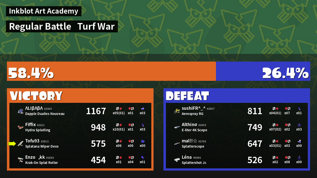 | Mode | Turf War - Regular Battle | ||