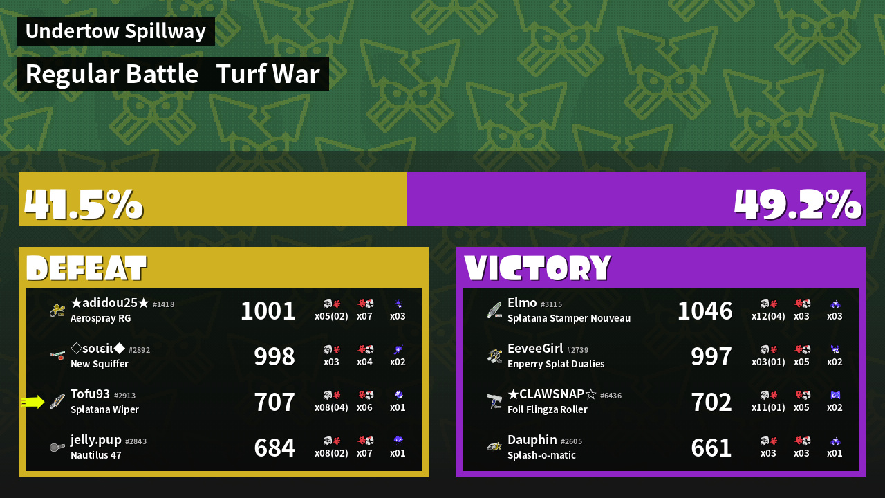 | Medals | #1 Overall Splatter #1 Splat Assister #1 Ground Traveler | ||