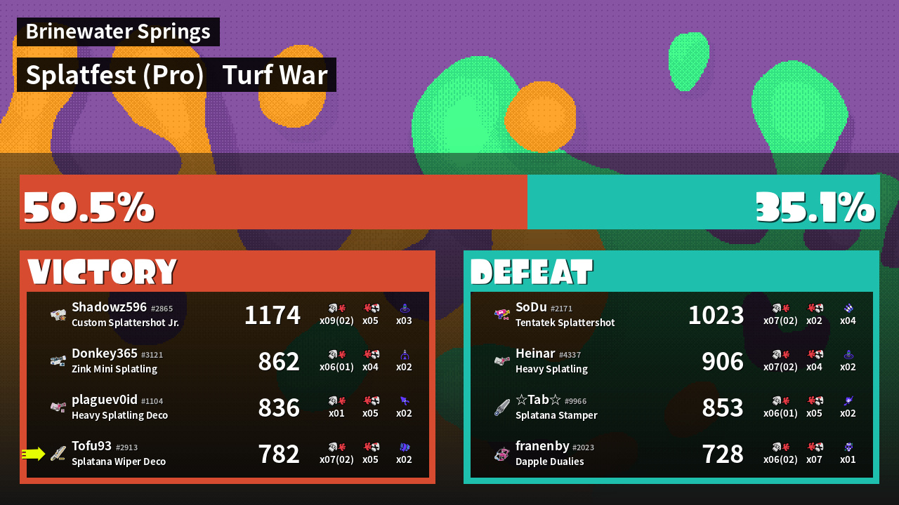 | Medals | #1 Splat Assister #1 Ground Traveler #1 Tenta Missiles User | ||