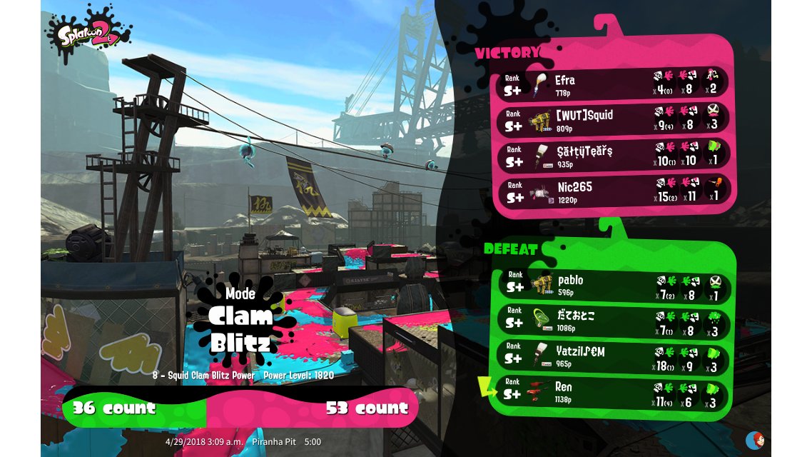 | Name | Weapon | Level | Rank | Inked | k+a/sp | k/d |