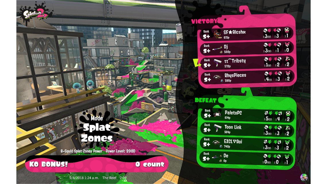 | Mode | Splat Zones - Ranked Battle | |||||||||||||||||||||||||||||||||||||