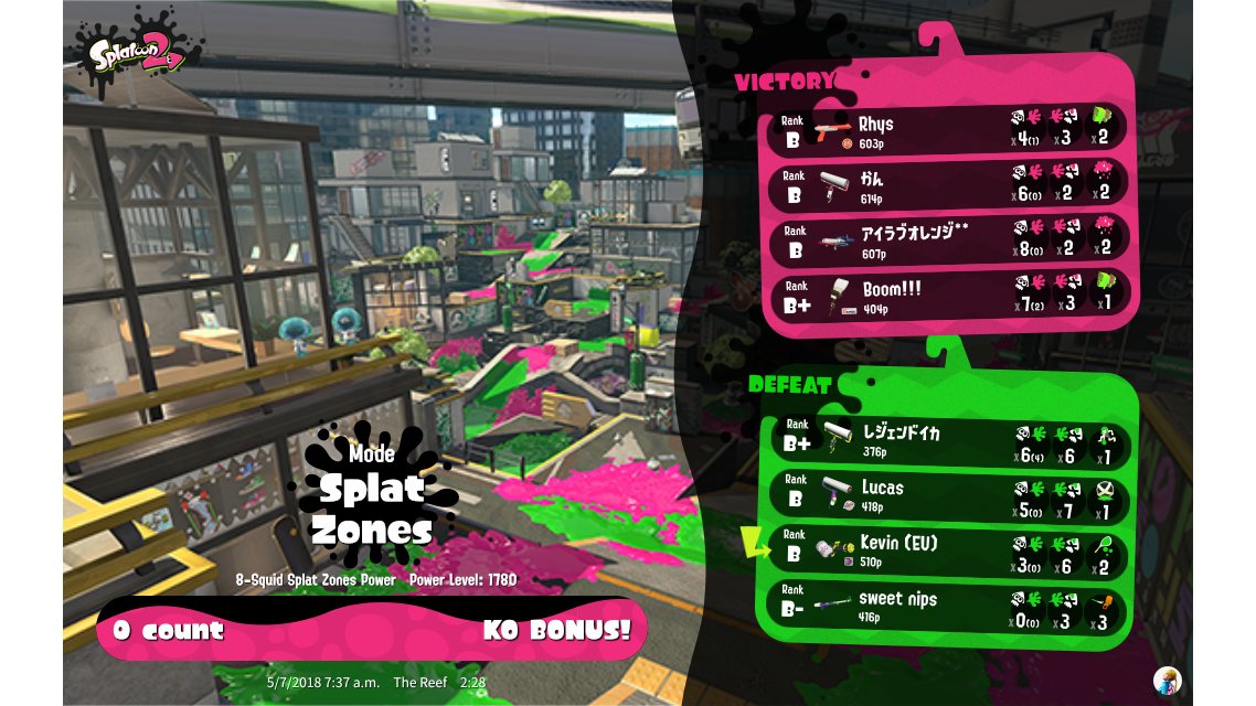 | Mode | Splat Zones - Ranked Battle | ||||||||||||||||||||||||||||||||||||||||