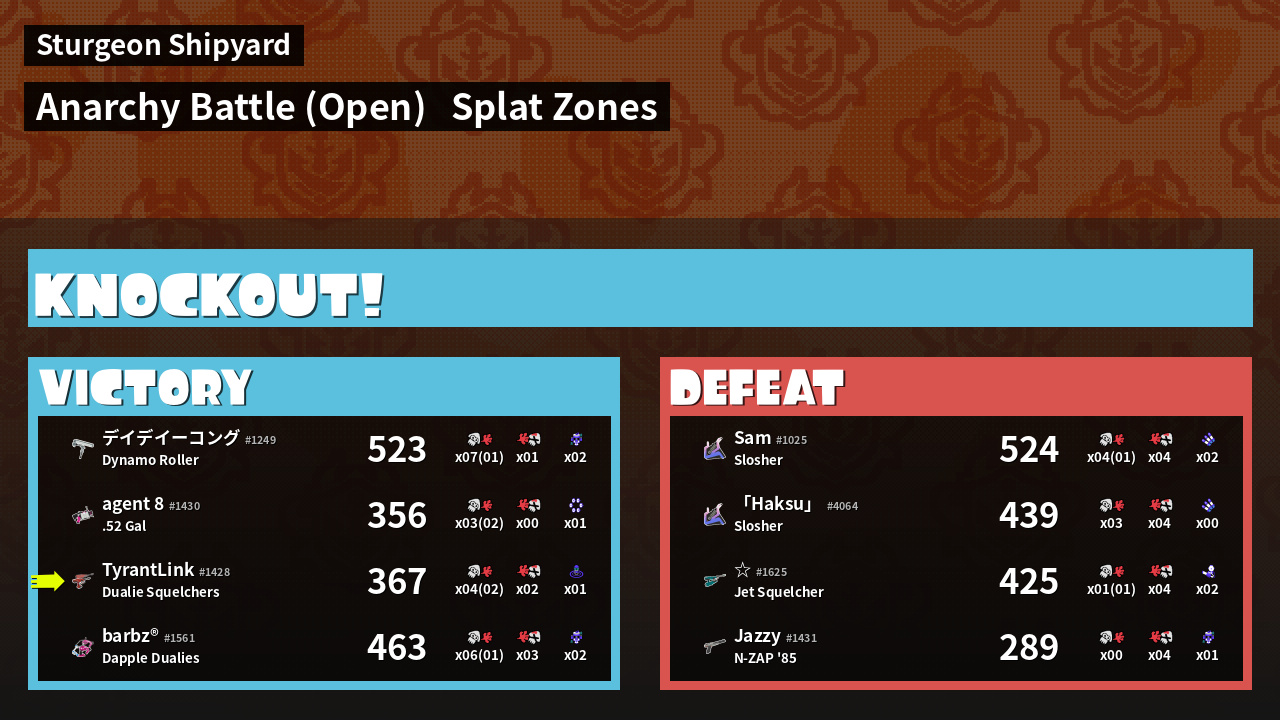 | Mode | Splat Zones - Anarchy Battle (Open) | ||