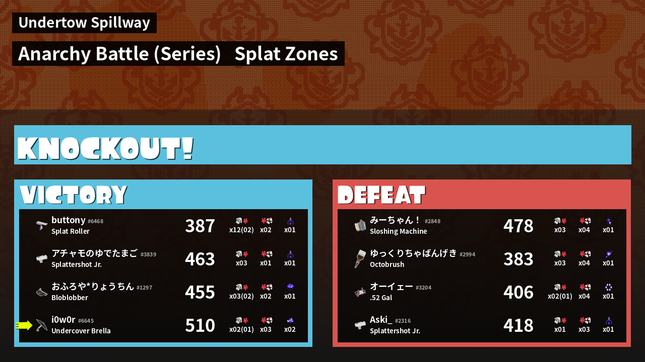 | Mode | Splat Zones - Anarchy Battle (Series) | ||