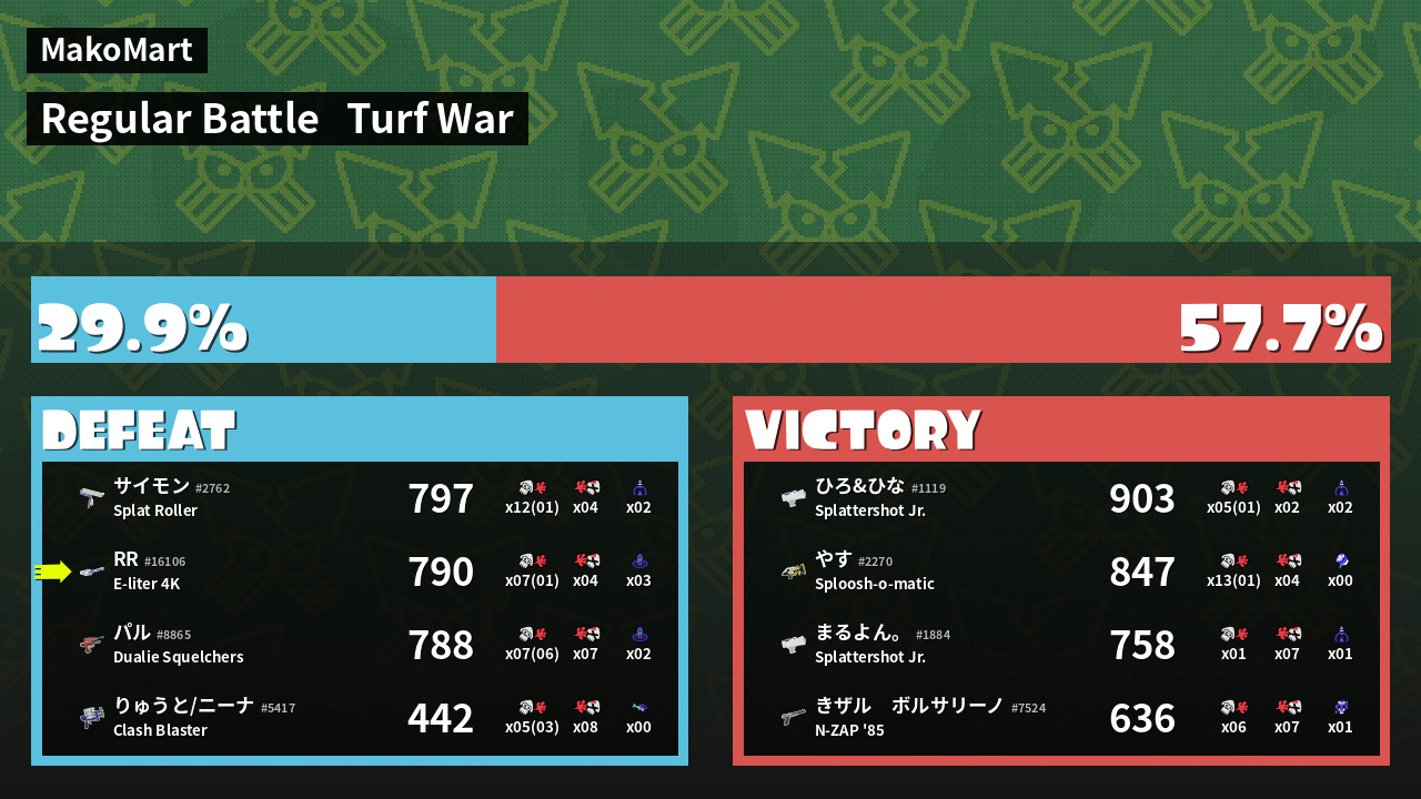 | Mode | Turf War - Regular Battle | ||