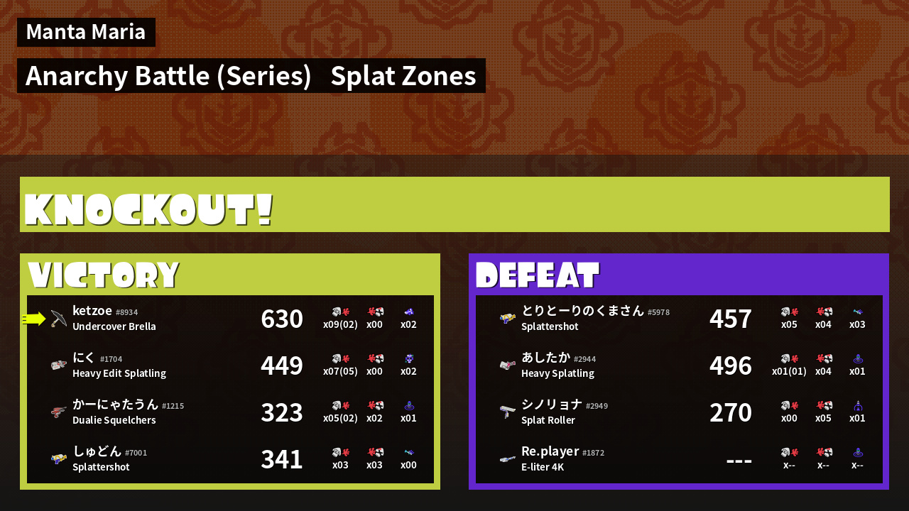 | Mode | Splat Zones - Anarchy Battle (Series) | ||