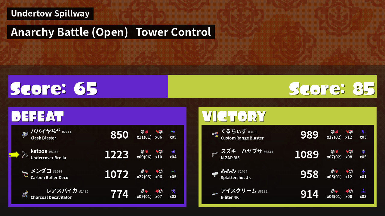| Mode | Tower Control - Anarchy Battle (Open) | ||