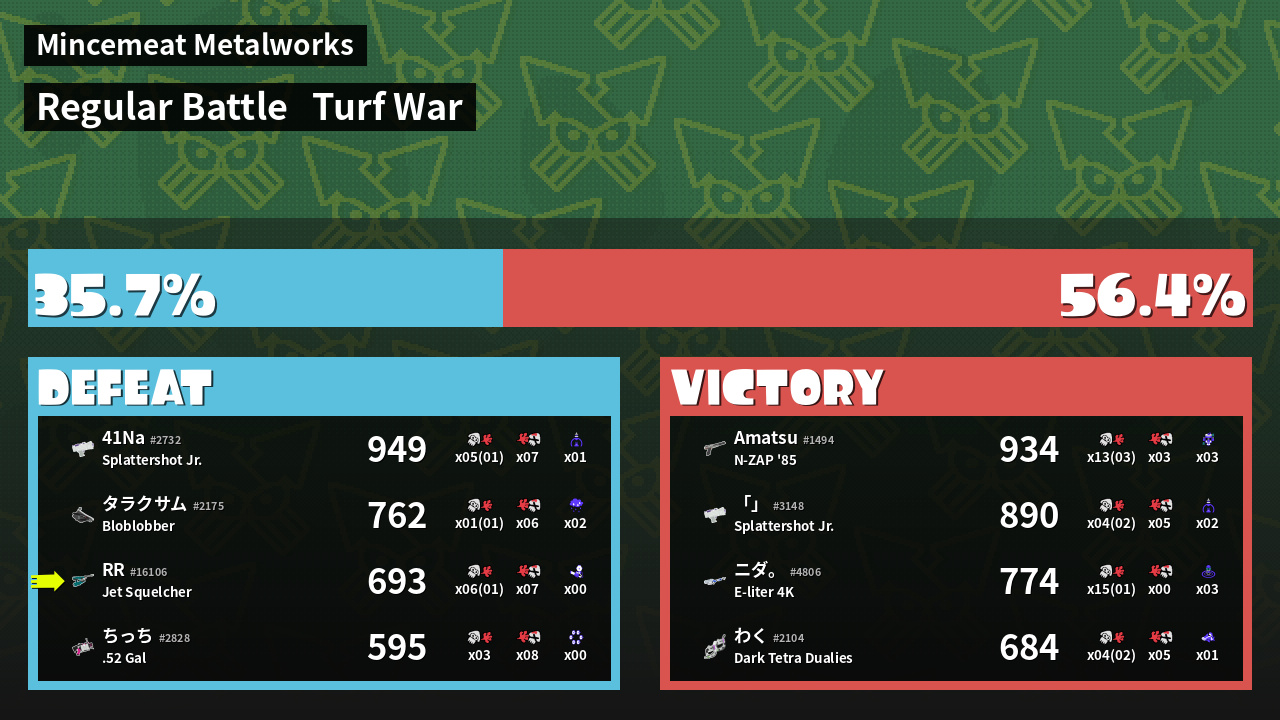 | Medals | #1 Overall Splatter #1 Popular Target #1 Enemy Splatter | ||