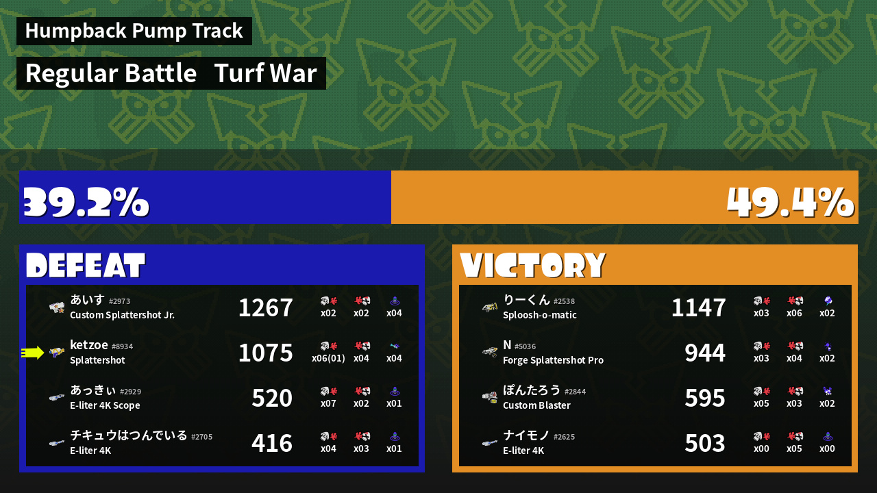 | Medals | #1 Home-Base Inker #1 Splat Assister #1 Base Defender | ||