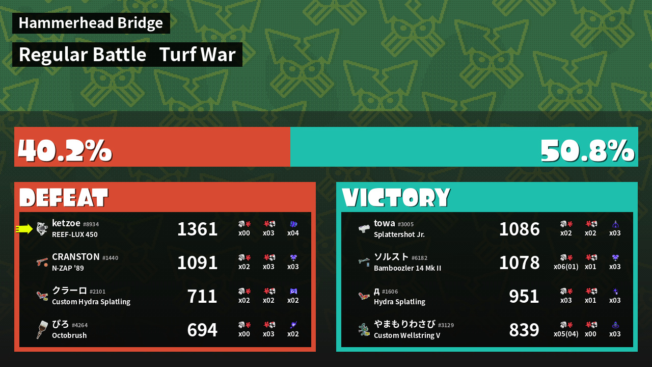 | Medals | #1 Turf Inker #1 Home-Base Inker #1 Enemy-Base Inker | ||