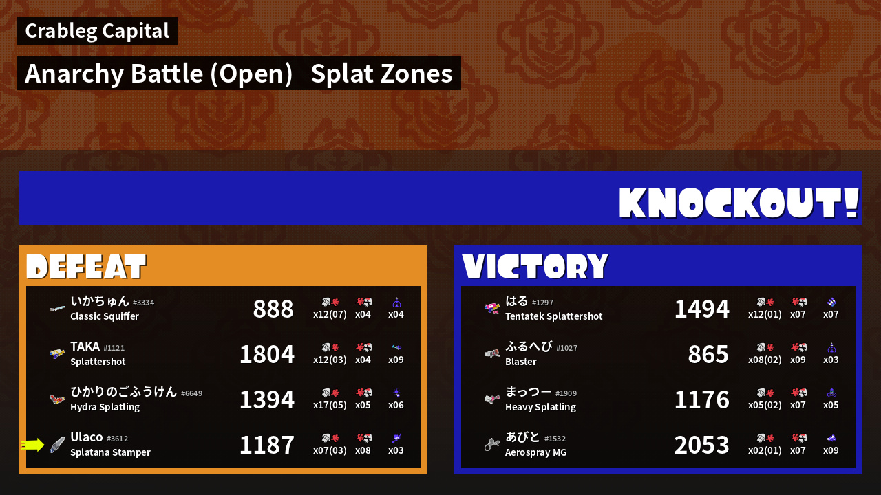 | Mode | Splat Zones - Anarchy Battle (Open) | ||