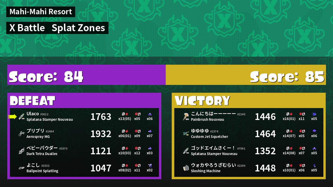| Mode | Splat Zones - X Battle | ||