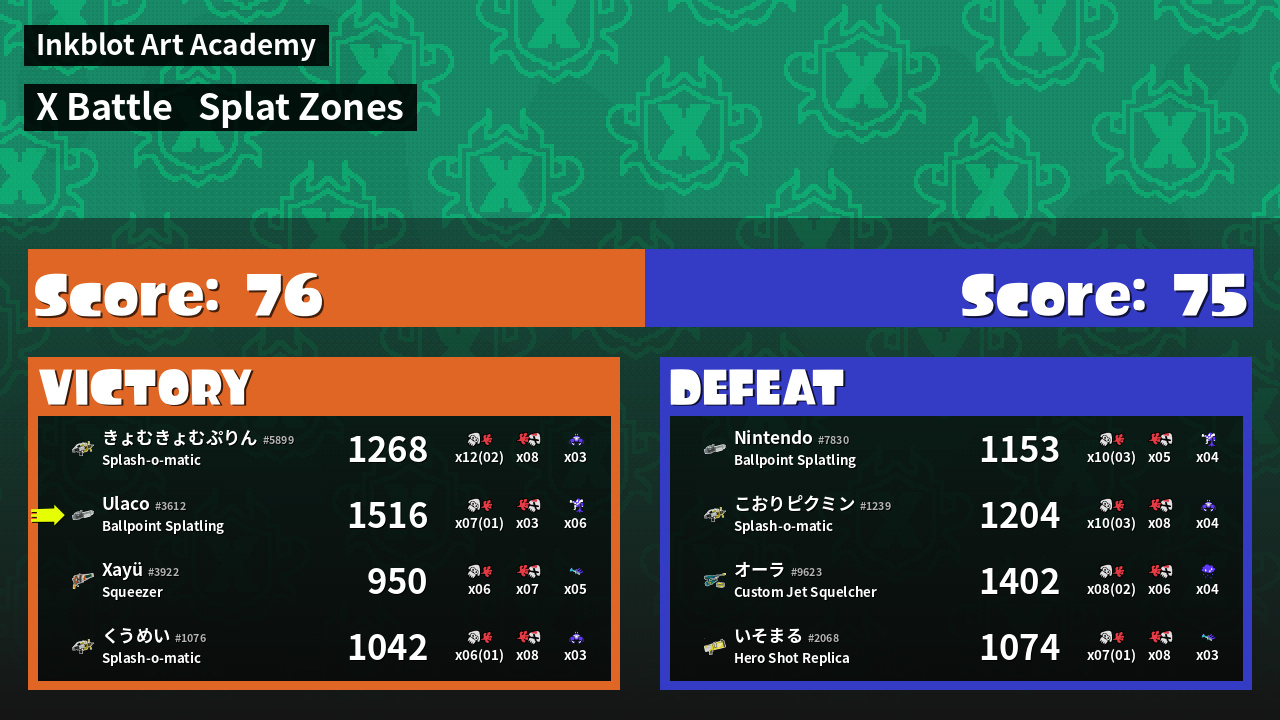 | Mode | Splat Zones - X Battle | ||