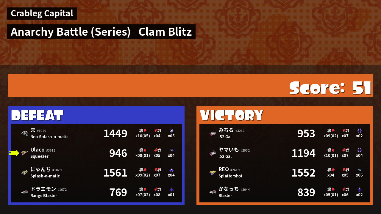 | Mode | Clam Blitz - Anarchy Battle (Series) | ||
