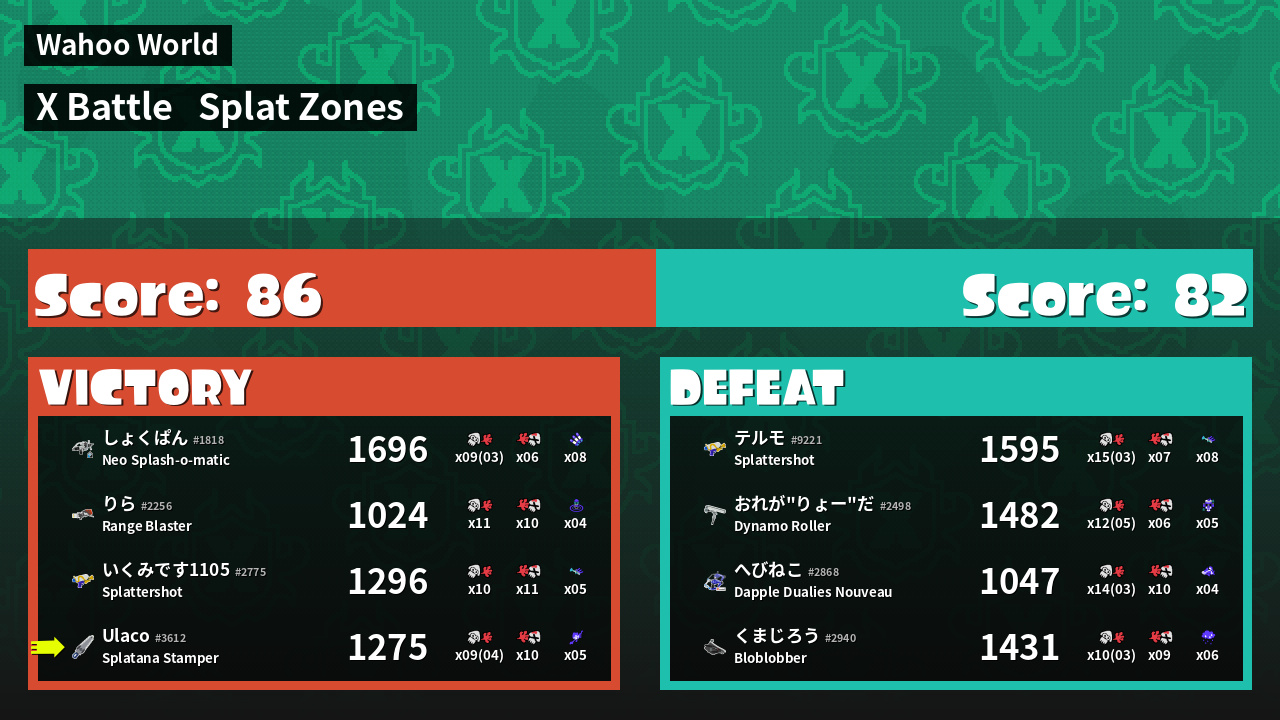 | Medals | #1 Splat Assister #1 Ground Traveler #2 Splat Zone Guard | ||