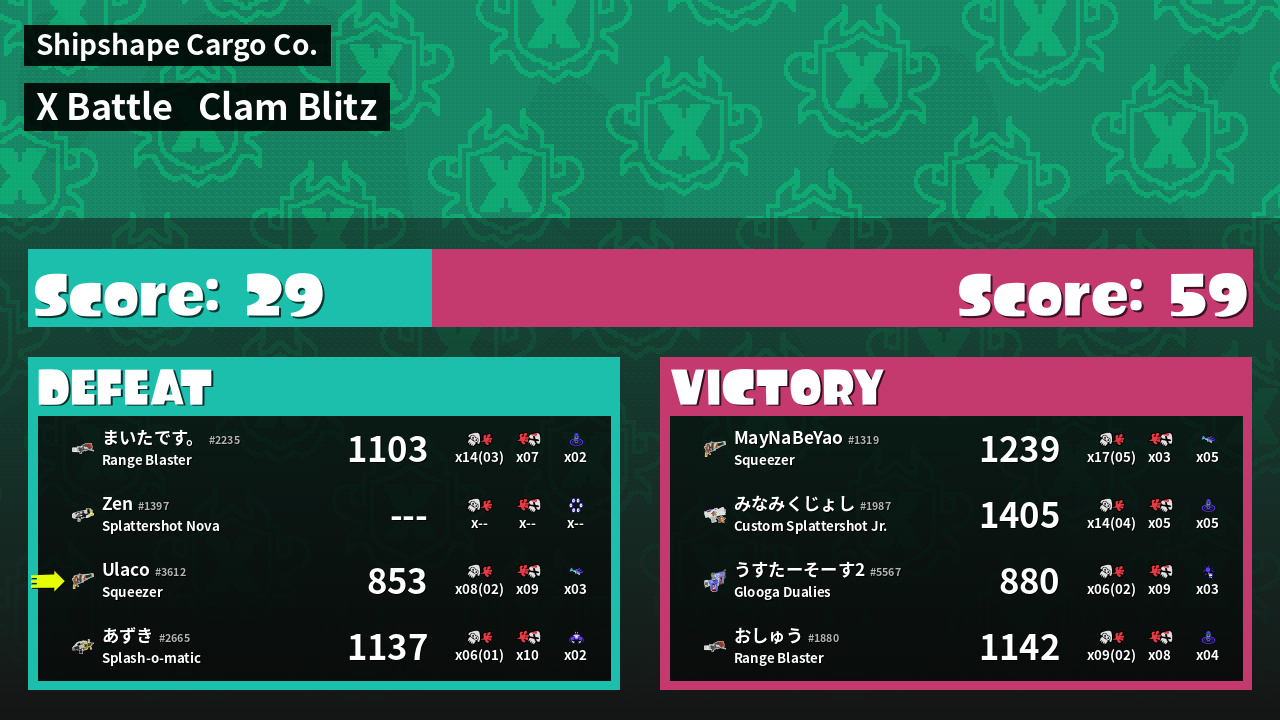 | Mode | Clam Blitz - X Battle | ||