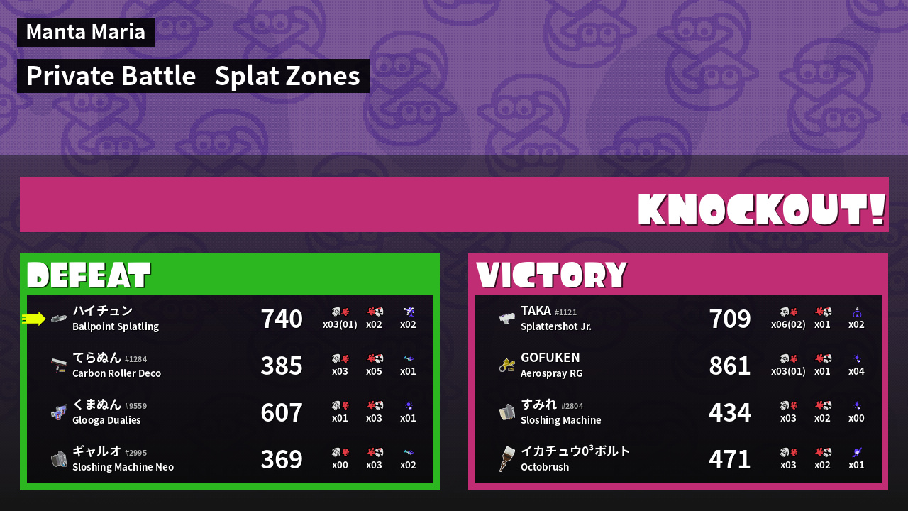 | Mode | Splat Zones - Private Battle | ||