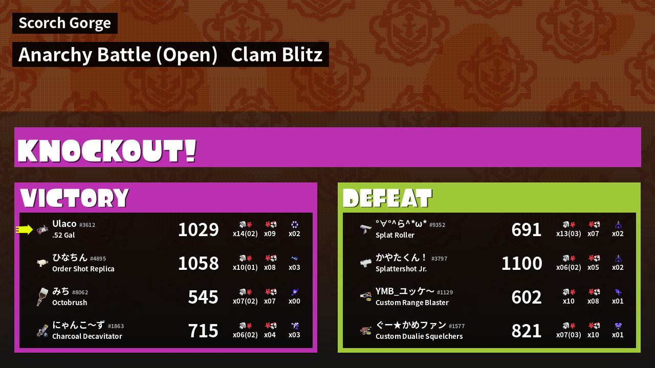 | Mode | Clam Blitz - Anarchy Battle (Open) | ||