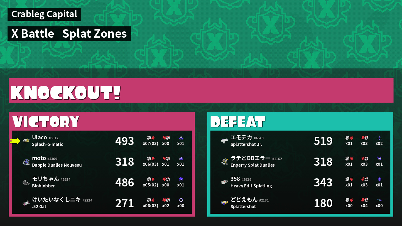 | Mode | Splat Zones - X Battle | ||