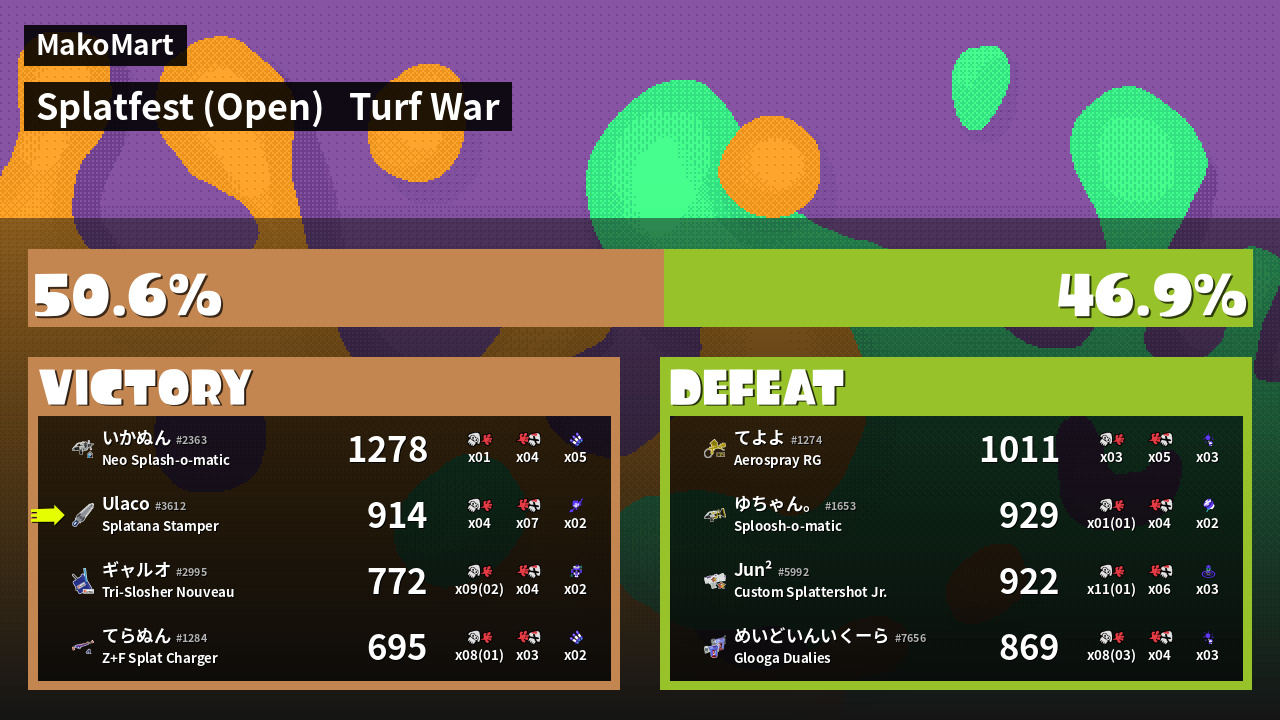 | Mode | Turf War - Splatfest (Open) | ||