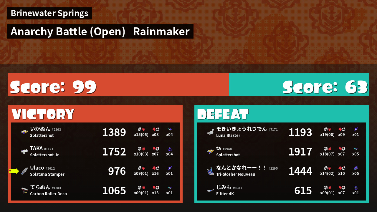 | Mode | Rainmaker - Anarchy Battle (Open) | ||