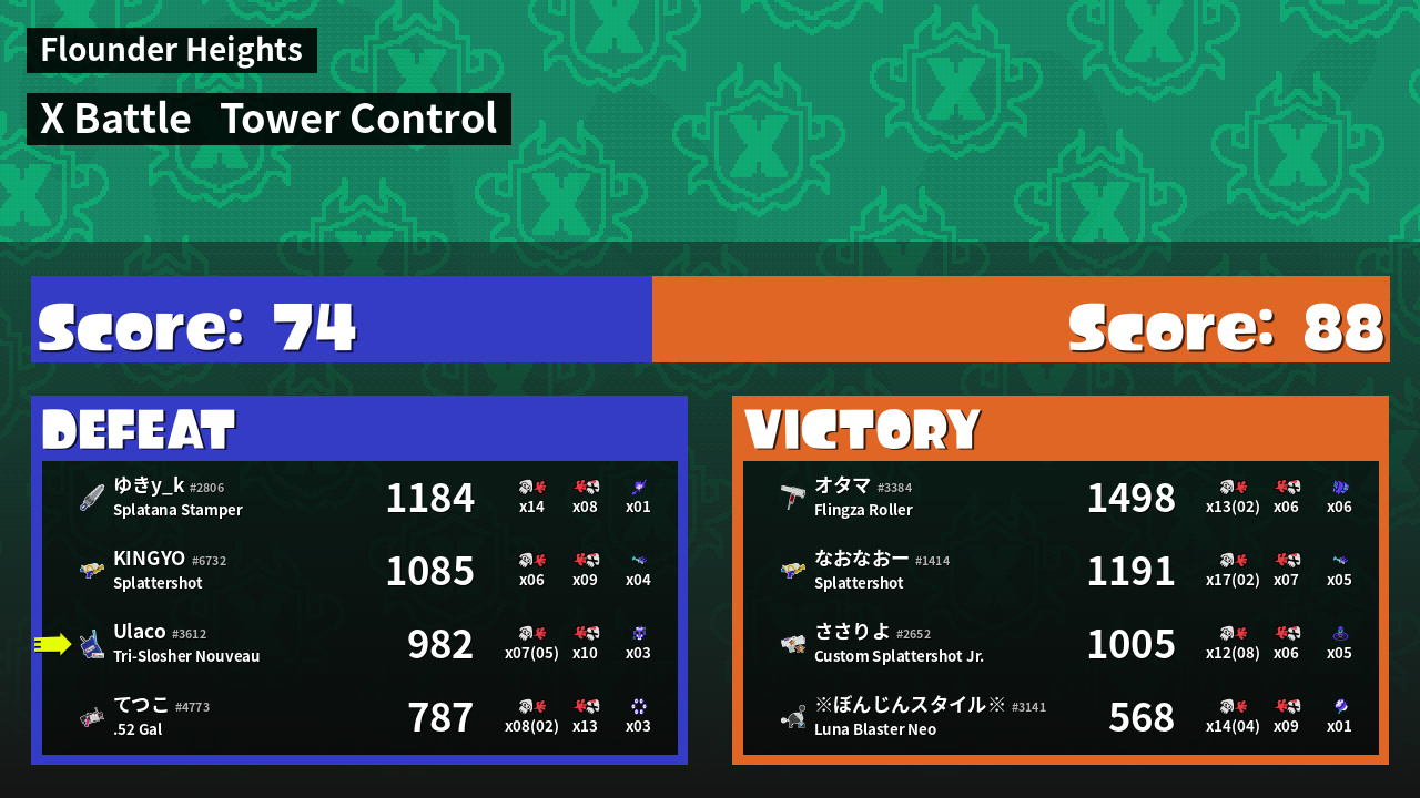 | Mode | Tower Control - X Battle | ||